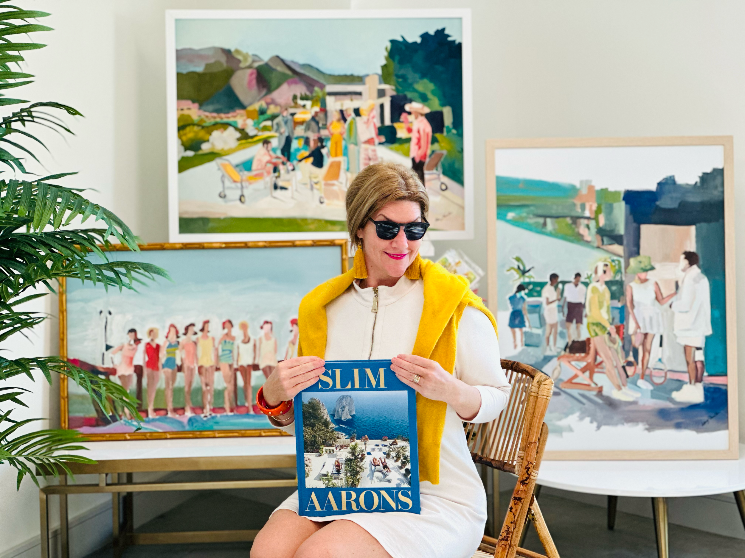 “Abbey Mueller has masterfully tapped into the quintessential leisure and affluence of coastal life, drawing inspiration from the iconic photography of Slim Aarons. Aarons, renowned for his ability to capture the glamorous lives of the elite, has found a spirited successor in Mueller, whose paintings breathe life into the static opulence of high society gatherings. Mueller's collection is more than just art; it's an invitation to an endless summer where the sun kisses the horizon, and the days blend seamlessly into nights filled with laughter and good company.