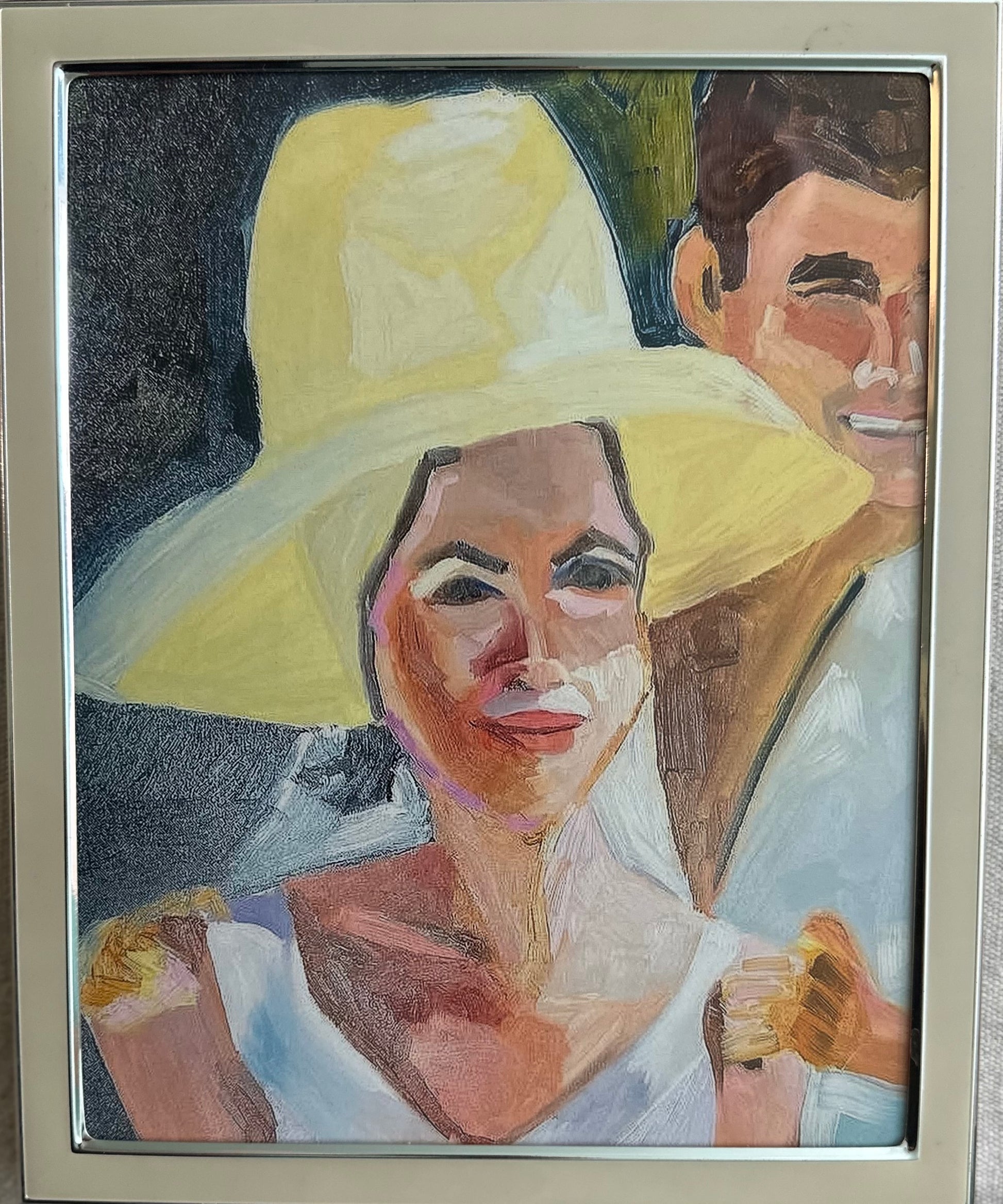Giclee Print on fine art paper framed in a white and silver photo frame.