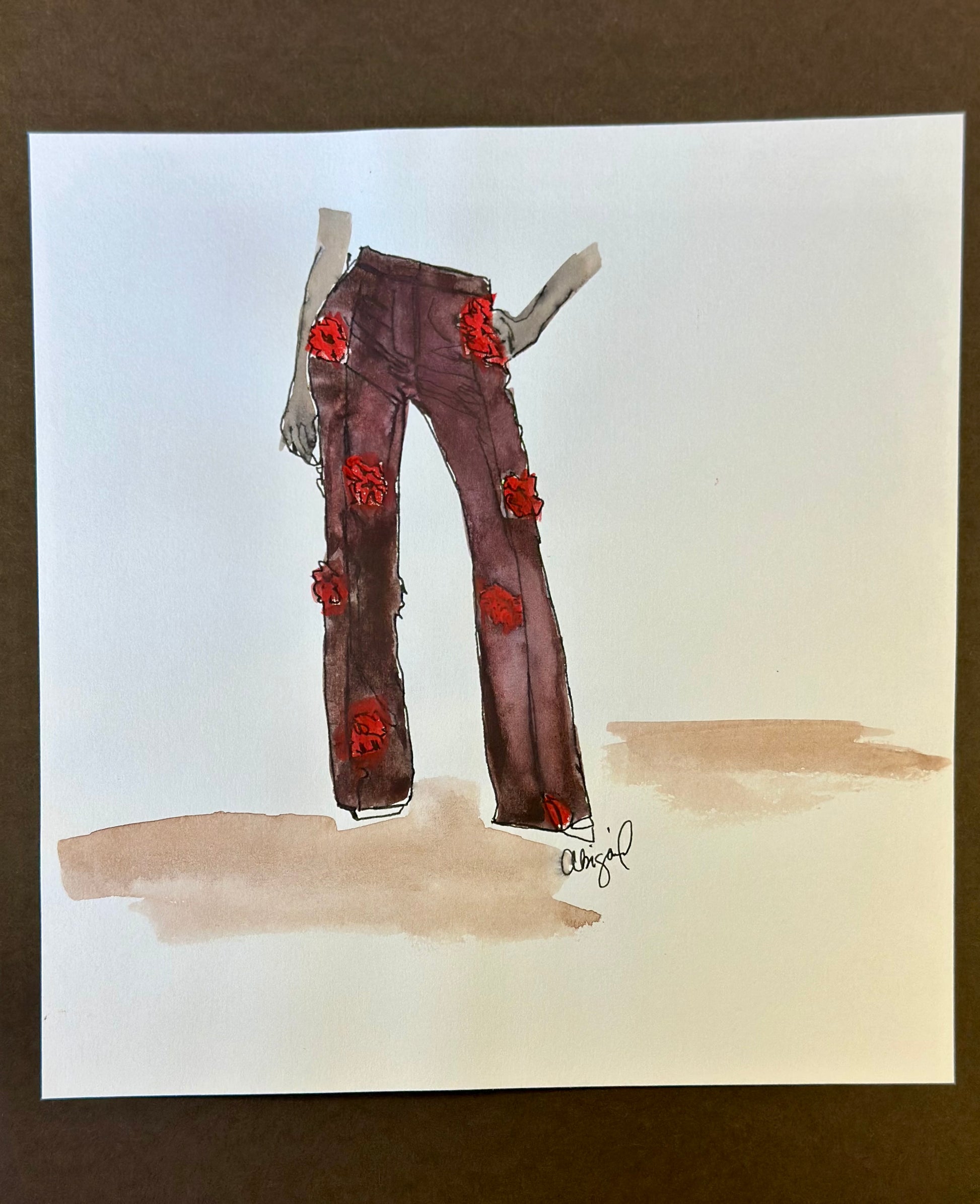 This bold, original watercolor exudes luxury and confidence, featuring a striking figure in flowing red and black pants. Painted with loose, expressive strokes, it blends fashion-forward flair with effortless elegance. A statement piece that radiates power, poise, and high-end allure.